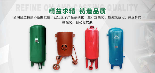 本企業(yè)產(chǎn)品有眾多產(chǎn)品分類(lèi),儲(chǔ)氣罐、磨料桶、碳鋼儲(chǔ)氣罐、不銹鋼儲(chǔ)氣罐、中高壓儲(chǔ)氣罐、臥式儲(chǔ)氣罐、緩沖罐、隔膜罐、噴砂罐、分氣缸、以及其他的定做非標(biāo)產(chǎn)品等,產(chǎn)品廣泛應(yīng)用于化工、制藥、橡膠、石油、食品、機(jī)械等行業(yè)。
